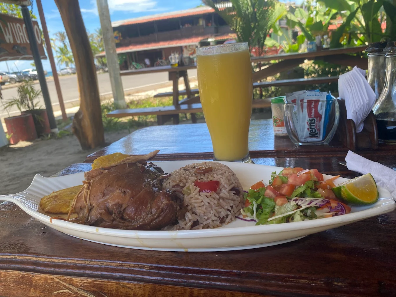 Soda Wuacho is a small, local soda-style restaurant in the heart of Manzanillo serving classic Caribbean and Costa Rican dishes like seafood, casados, and chicken cooked with flavorful local sauces. It’s a casual and authentic spot popular with both visitors and locals for fresh, hearty meals near the beach area,